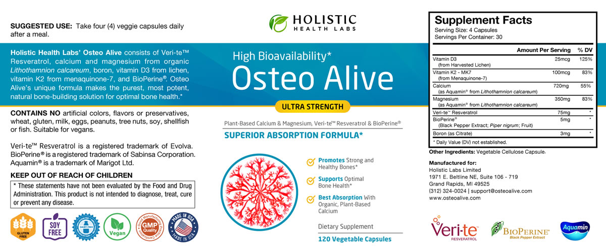 New Osteo Alive 2.0 Formula With 120 Capsules (30 Days Servings) -